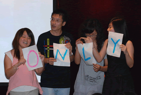 绽放才艺 抒发深情 入营第一天起,大家就听说学业结束时封闭营会组织一场联欢会,以小组为单位表演节目,为此,大家经过一个星期高效紧张的学习之后,便着手准备节目的编排。无论主持人的推选,还是各学习小组节目的编排,同学们踊跃参与,呈现出歌舞、小品、DV,时装表演等精彩节目。 首先登场的是高口小组准备的视频短片。虽然拍摄手法并不专业,但是抓拍下的同学们学习、生活中的一个个精彩瞬间异常生动:一张张可爱的面孔,一个个风趣的表达,流露出心中的无限快乐,同学们在阵阵欢笑声中感受着短暂相处中结下的珍贵友谊。 当中口小组14位女生合唱一首“爱因为在心中”时,全场顿时弥漫着浓浓深情。同学们手捧蜡烛,组合成ONLY的图案,在温馨的氛围、抒缓的弦律中,用优美的歌声唱出“爱因为在心中。。。。”并在曲终时刻,深情朗诵:昂立让我们相逢,尽情地抒发着对昂立的热爱之情,全场同学深受感染,心中涌起阵阵感动。