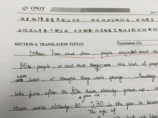 5. 最后,听译部分毕竟题型难度较大,总是会有生词或是关键信息没有及时抓住。这个时候同学应该根据已听懂的部分,经过上下文推敲,自圆其说,千万不能在答题纸上留下空白,给批卷老师做填空题。 答题的原则应是:写在答题纸上的句子或段落一定是完整通顺的。 以上是这次批改模考卷,结合同学实际情况,给各位考生的一些建议,希望大家能够在正式考试时避免这些错误,减少不必要的扣分。