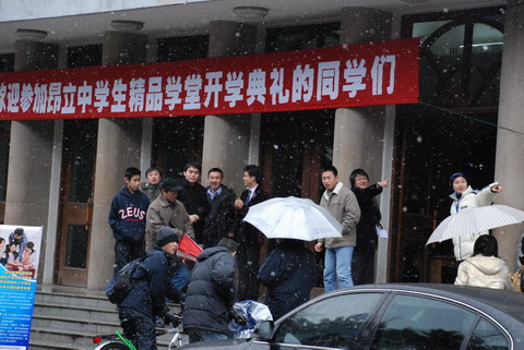 08年1月26日,新年伊始沪上的第一场大雪,不期而至,虽然天气寒冷,但数千名初高中学生在诸如“我长大了要当建筑师”、“我要当医生”、“我爱我的父母,我要出人头地回报父母”等梦想的激励下,依旧不顾寒冷的天气,冒着凛冽的寒风,以高昂的热情参加被誉为沪上中学生名校桥梁的昂立中学生精品学堂开学典礼。