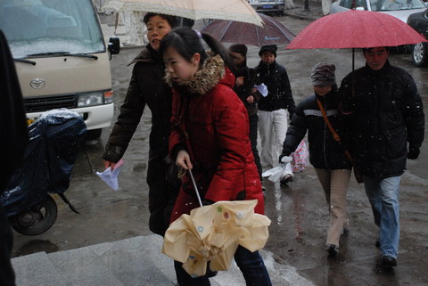 冒着大雪,学员们或骑车,或步行,或乘车,都为了心中的梦想,努力。